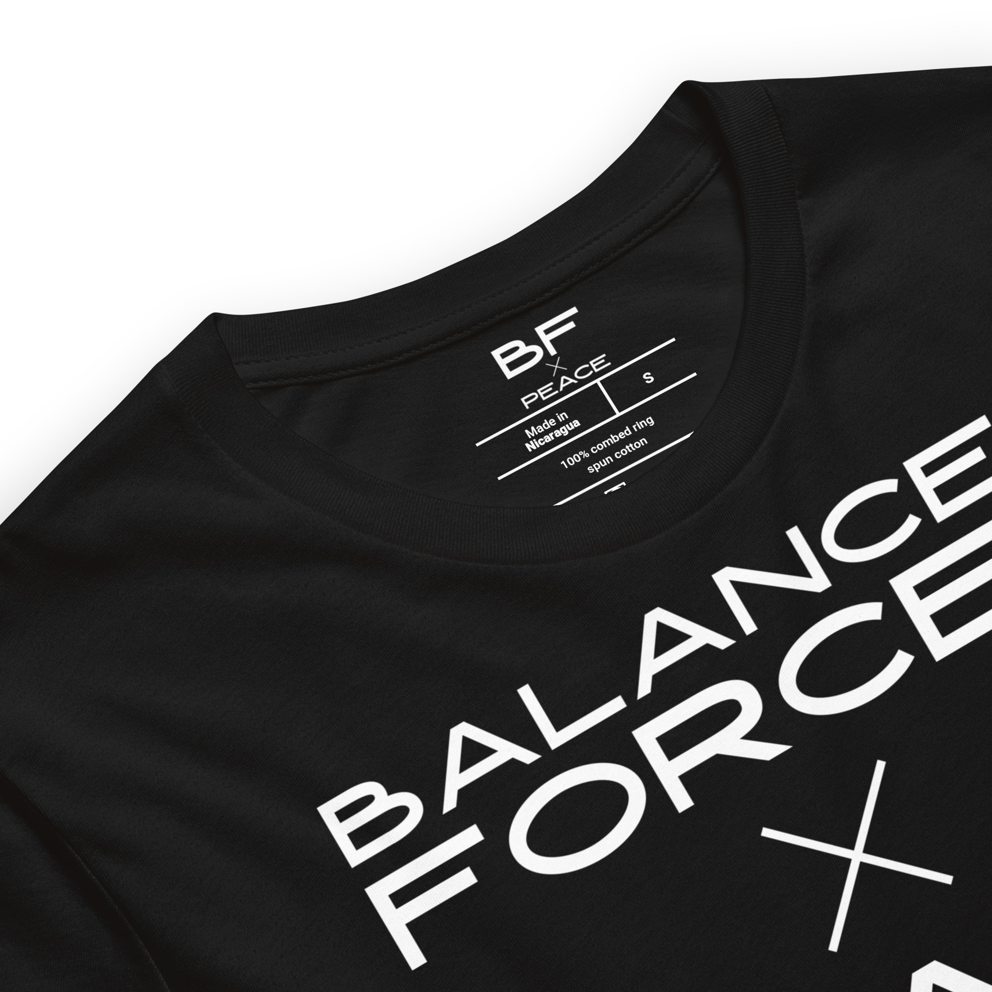 BALANCED FORCES X PEACE Unisex Tee made in 100% cotton from XS-4XL, black.