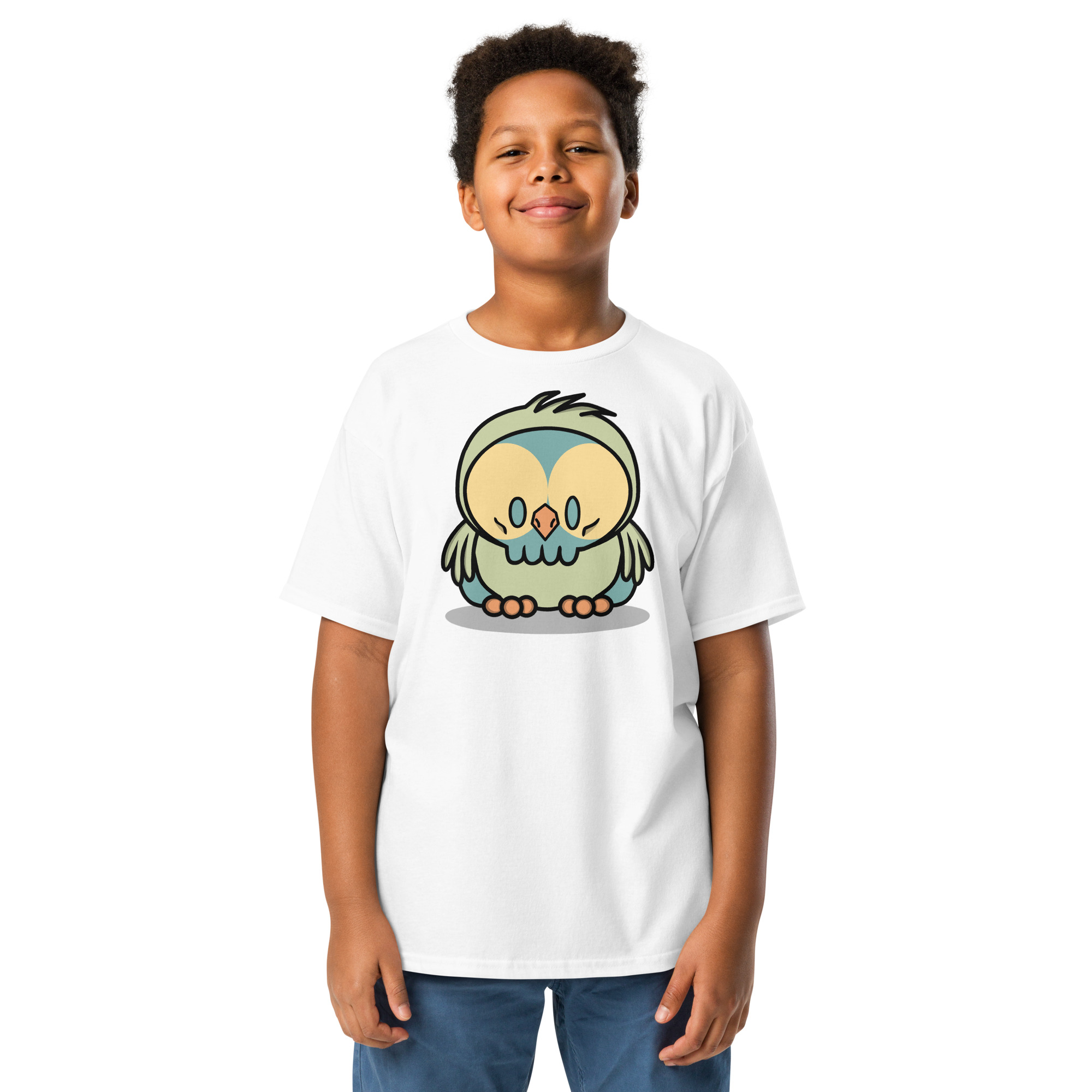 This adorable baby owl graphic sits front and center, ready to charm classrooms, playgrounds, and family gatherings alike. Calm, curious, and just a little mischievous—this owl is basically your kid in shirt form. 🦉😄