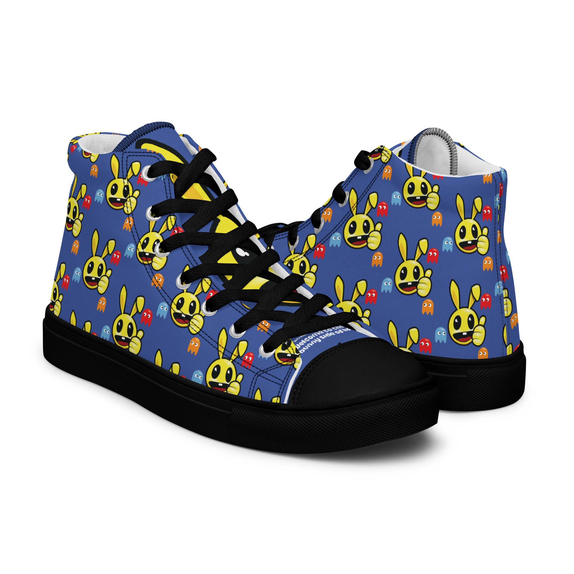 Allover printed Sneakers for Men in CryptoRabbit #187 design. The High Top Canvas Sneakers rock a classic, old-school vibe, and have the potential to be the “cherry on top” of your customers’ outfits.