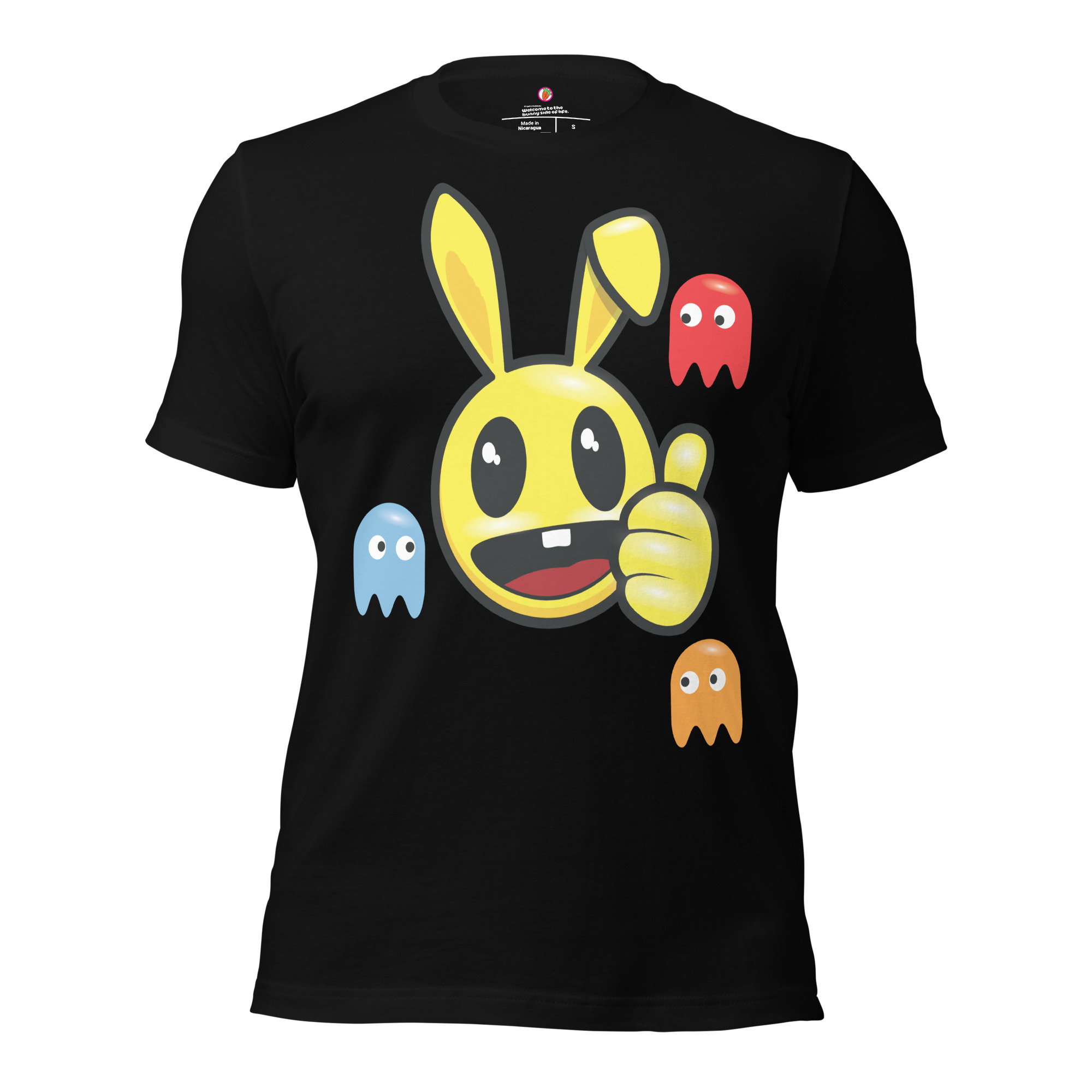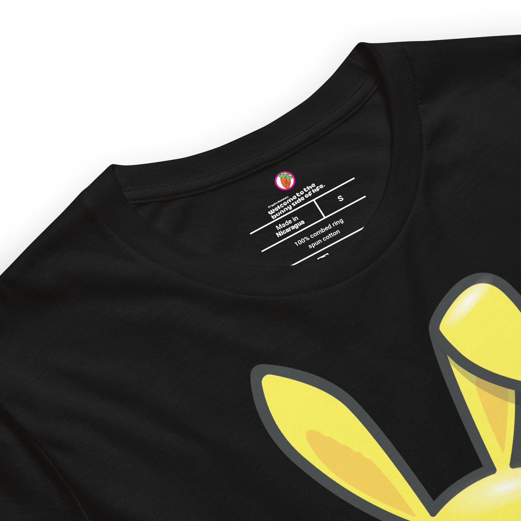 Iconic unisex high quality t-shirt. 100% certified organic cotton 180 gsm (5.3 oz/yd²) or 100% cotton 142 gsm (4.2 oz/yd²) with digital CryptoRabbits NFT prints at the front, back and neck (in- and outside).