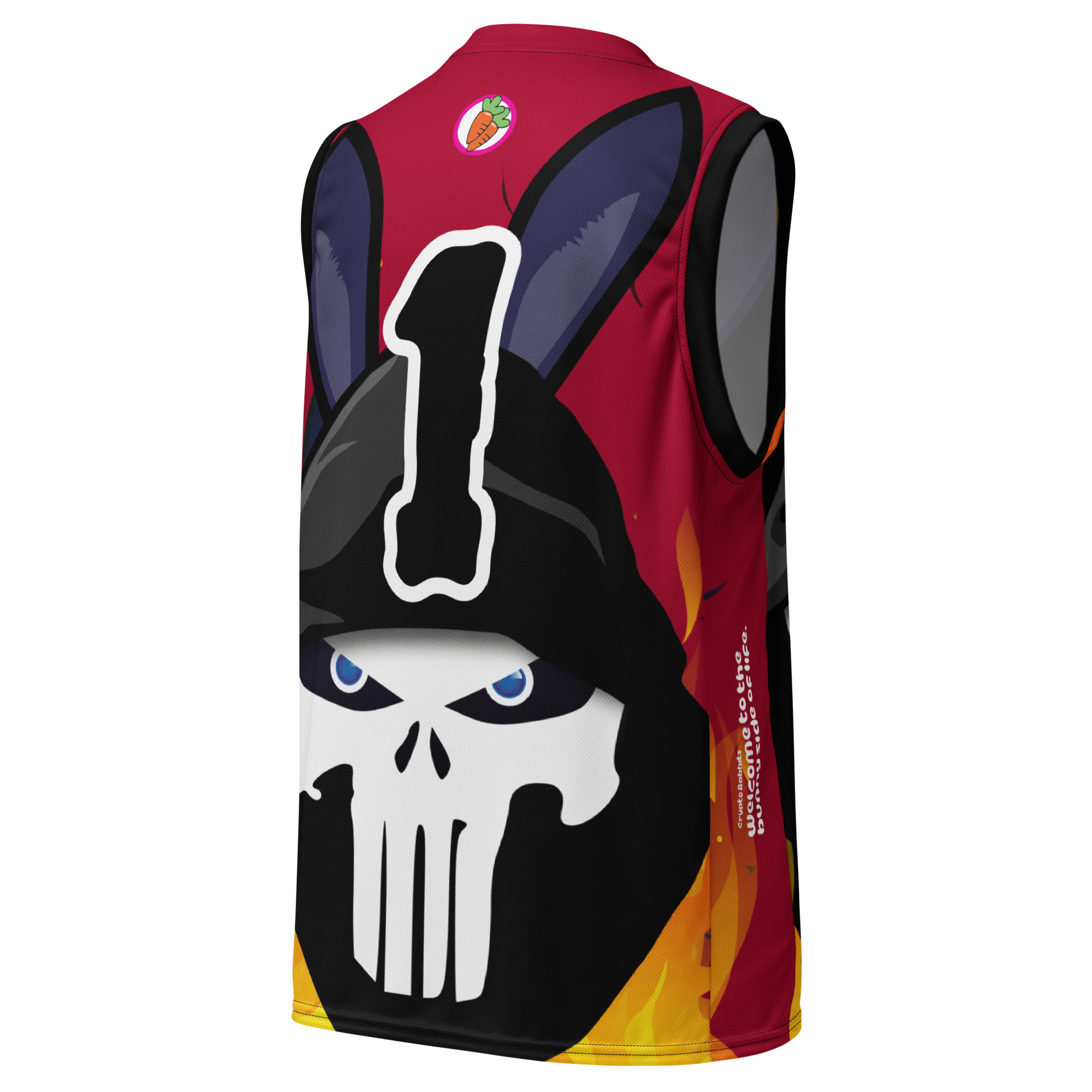 Unisex Crypto Rabbits basketball shirt made in 100% recycled polyester fabric. Allover printed unique NFT design. Crypto Rabbit #149 – The Bunnysher.