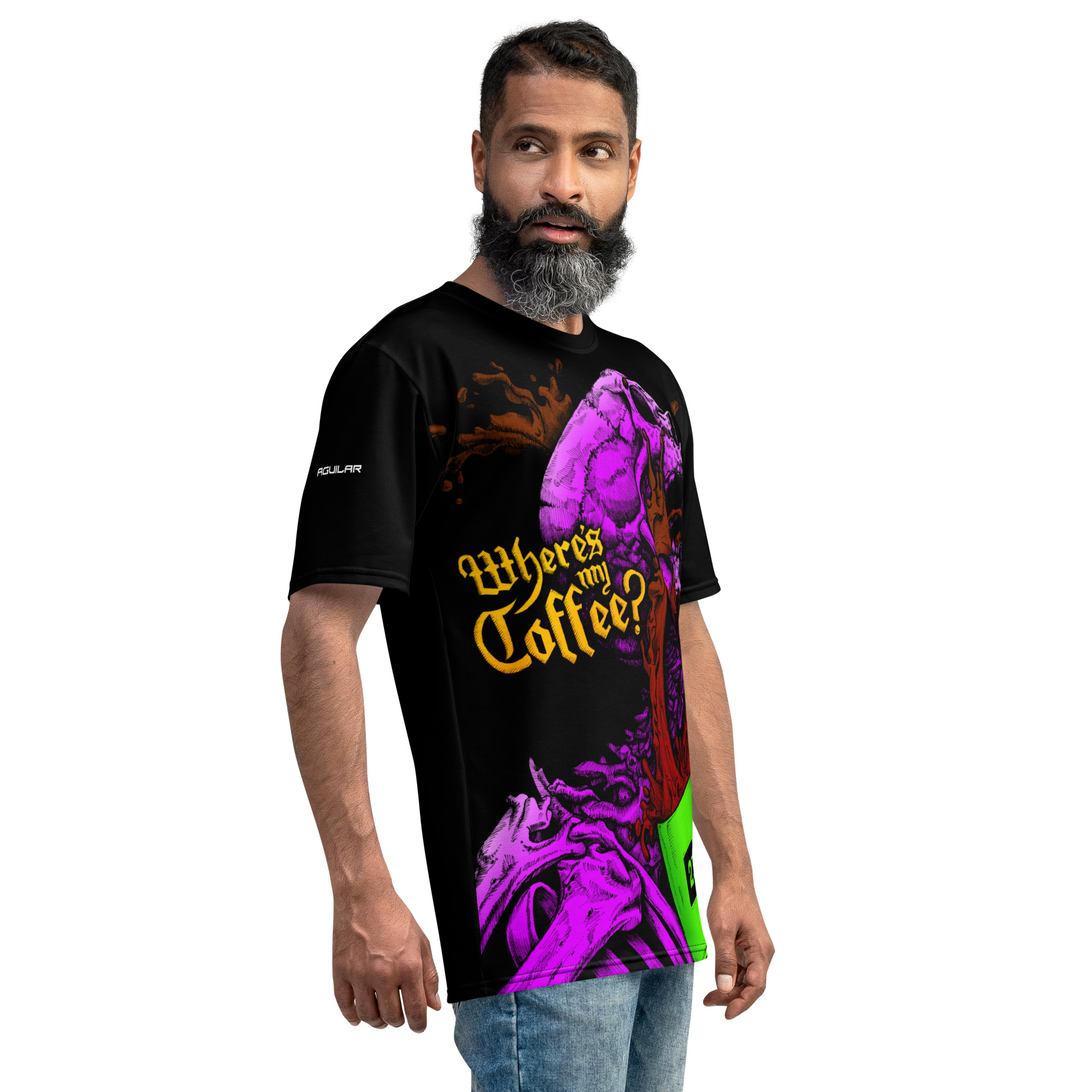 Start your day with a jolt of style and attitude. The Where Is My Coffee? all-over print t-shirt is more than a fashion statement. It is a morning mood manifesto for digital rebels who run on ambition and espresso.